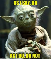 The phrase could be the motto for the any person who tacitly or experientially understands why a decision or way of acting might have bad consequences for someone else in a similar situation. Still, when I reflect a little deeper, it’s a phrase that promotes that most frustrating nature of our humanity – the person I am in my mind is still better than the person I am in the moment. “Do as I say” (for the person I was back then was right) “Not as I do” (for the person I am now is still flawed)