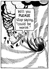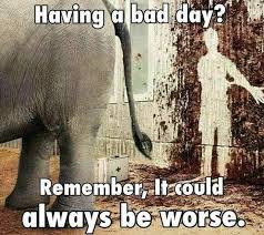However, there might be a problem with a ‘could be worse’ approach to alleviate suffering as we get older and more ingrained in the ‘human condition’. It whiffs of eau de contradiction to suggest that I will make you feel better by conjuring more horrifying circumstances for you to consider – but it may border on the sociopathic to apply that approach to anyone experiencing an objectively terrible life incident.